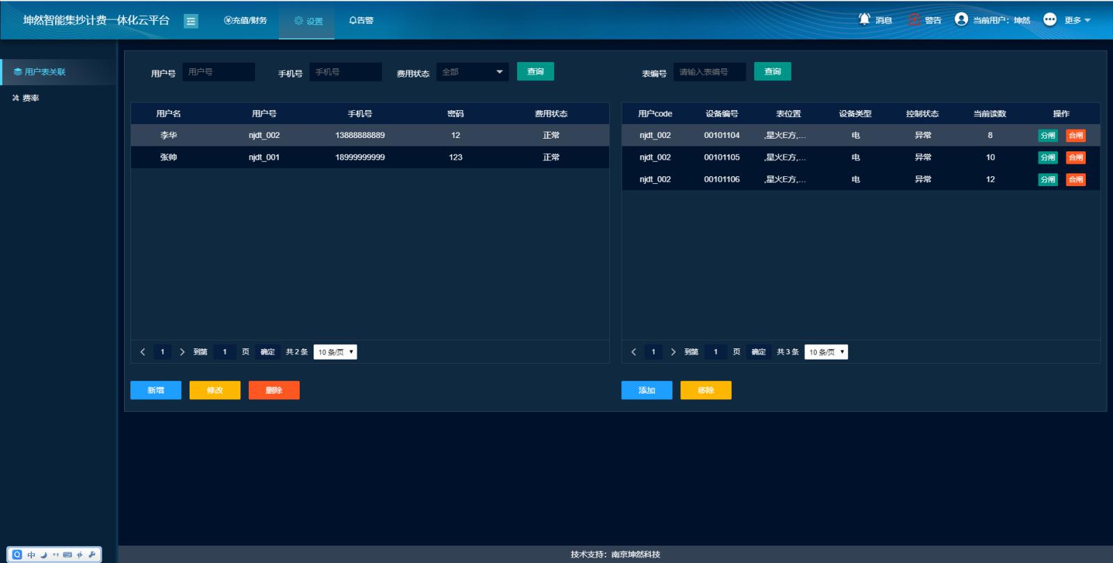 戶表設(shè)置:一戶多表,統(tǒng)一扣費(fèi),方便系統(tǒng)用戶繳費(fèi)充值,可對任意一塊表具進(jìn)行分合閘操作。